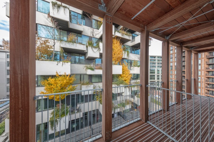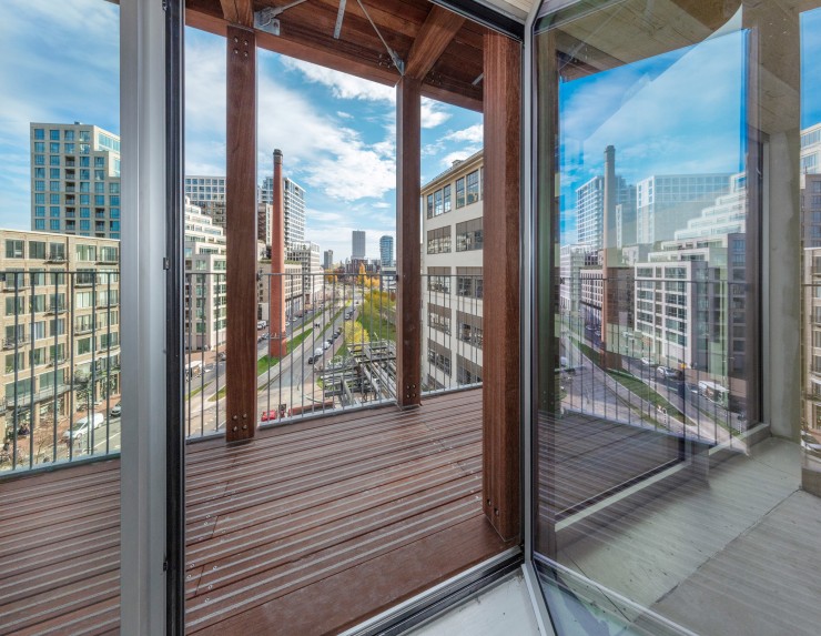 De appartementen worden voorzien van grote balkons en in het gebouw komt een inpandige opslag voor fietsen. De bewoners van de appartementen wonen rond een groene patio, die wordt aangelegd op de derde verdieping van Matchbox.
