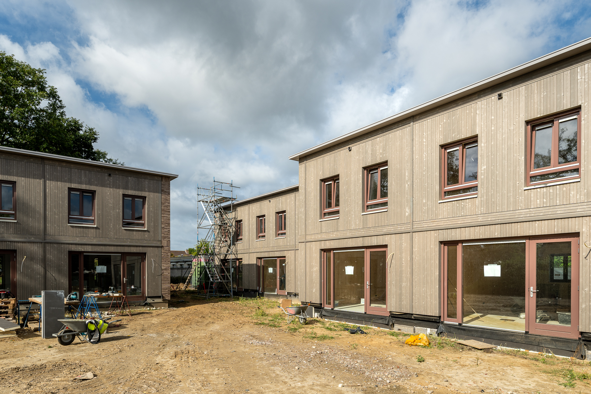 In het voorjaar van 2024 startten we de bouw van 18 duurzame en circulaire woningen aan de Mainelaan. Inmiddels zijn de woningen zo goed als klaar en hebben we ze kunnen toewijzen aan hun nieuwe bewoners! Dat zorgde voor heel wat blije gezichten tijdens de kijkdag vorige week. En vast opnieuw vandaag, als de eerste sleutels worden overhandigd. Wij zijn dan bijzonder trots op deze mooie sociale huurwoningen. De groene daken, minerale steenstrips en de houten geveldetails zorgen voor een frisse en natuurlijke uitstraling. De nieuwe bewoners kunnen elkaar straks ontmoeten in de gemeenschappelijke binnentuin. We wensen onze nieuwe huurders heel veel woonplezier op deze mooie plek!