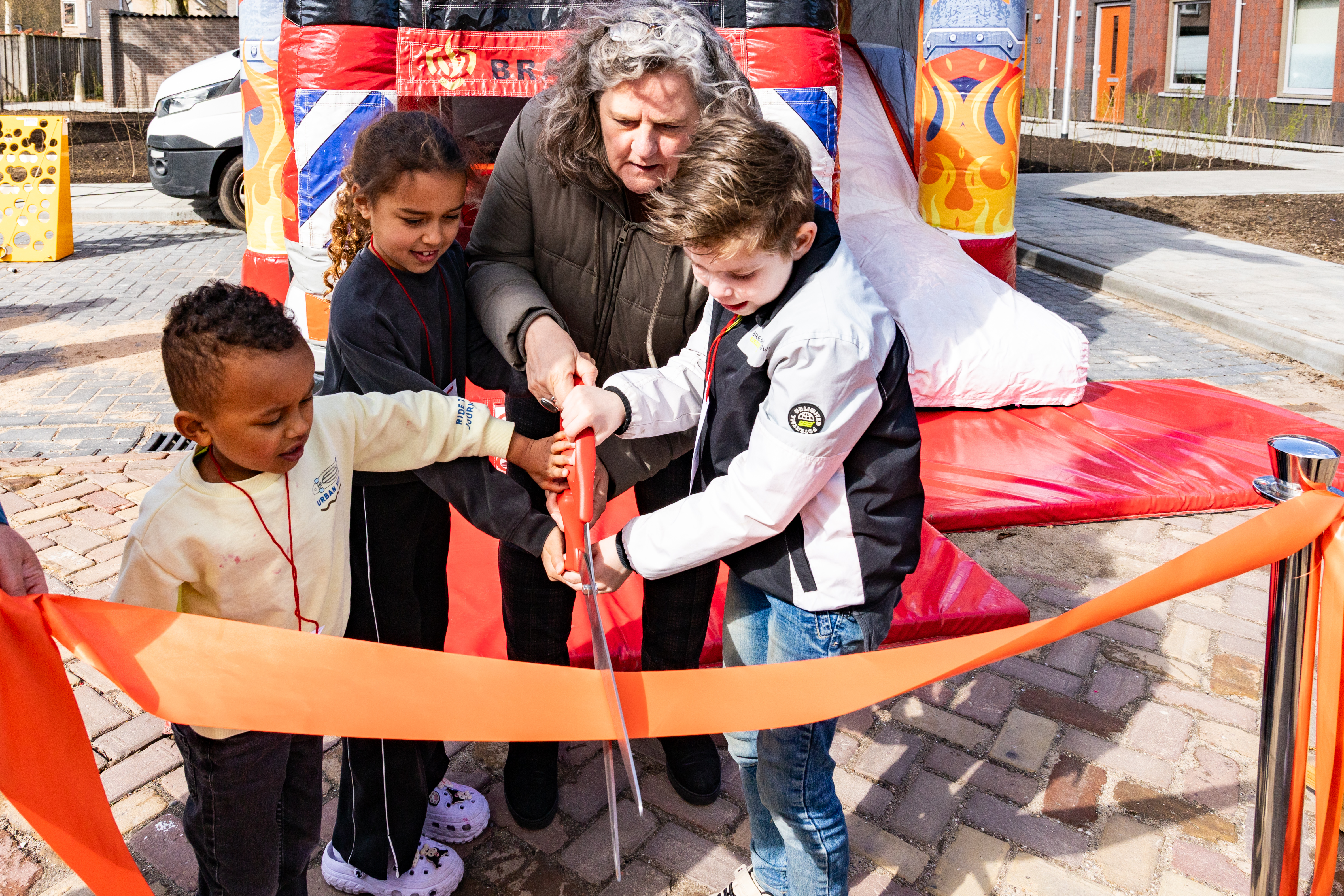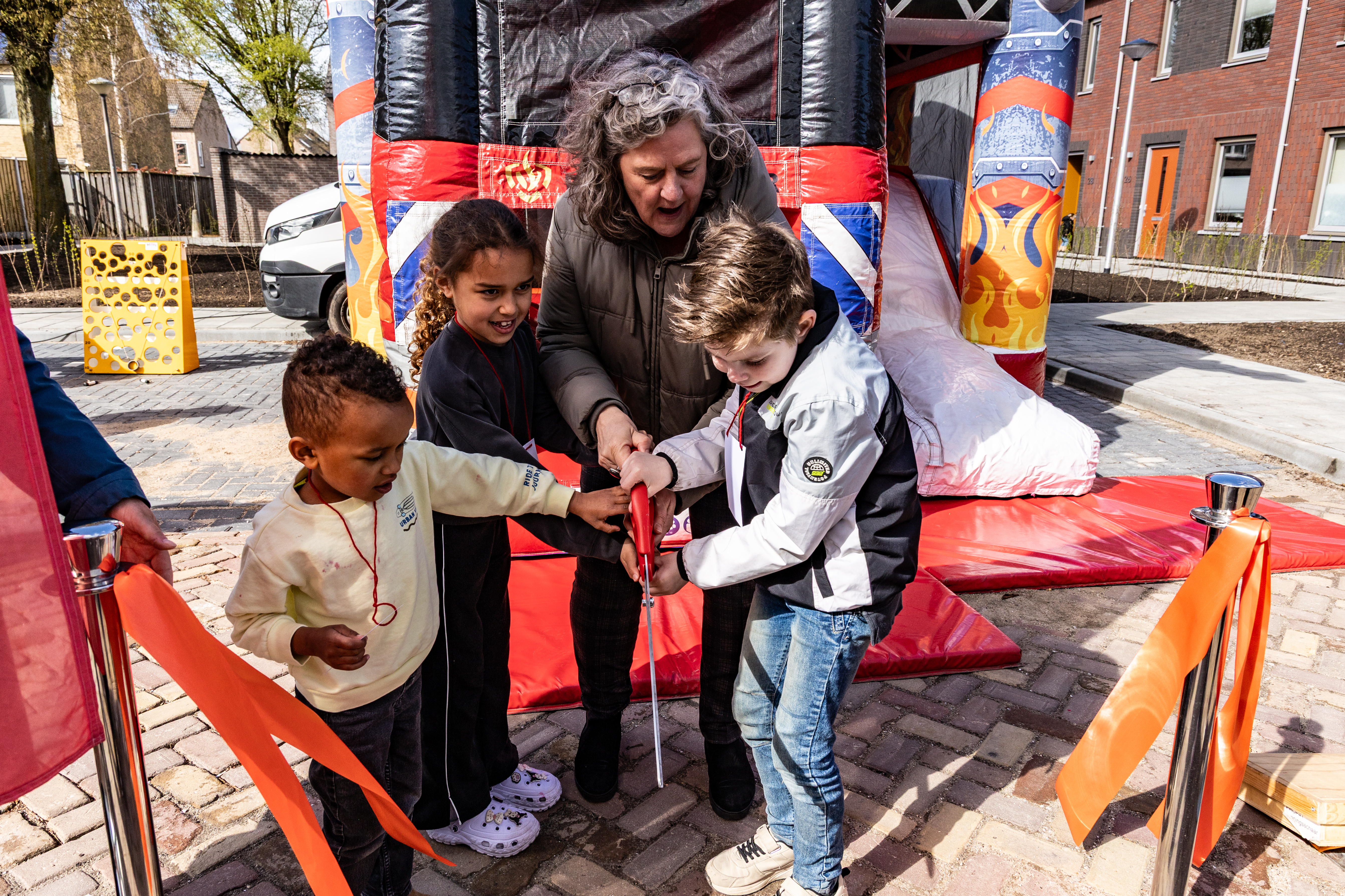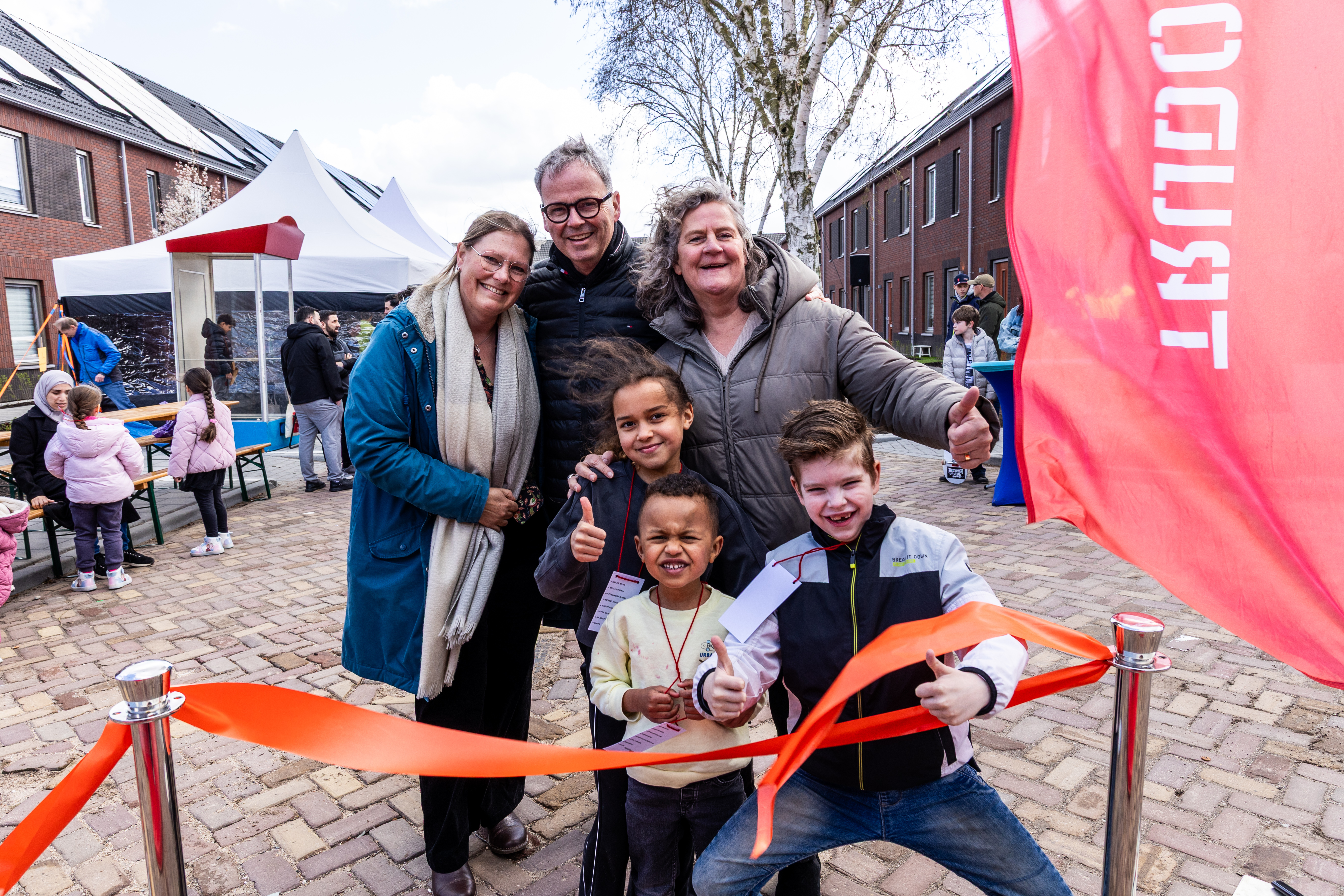 Wethouder Mieke Verhees opende samen met Trudo-bestuurder Edwin Jansen het opleverfeestje. Ondanks het frisse weer was de opkomst fantastisch: zeker 200 buurtbewoners kwamen kijken, kennismaken en meevieren. Met spelletjes, een springkussen, friet, koffie en door buurtbewoners gemaakte hapjes was het een gezellig drukke middag. Niet gek, want met de nieuwe woningen heeft de buurt er ruim 100 kinderen bij gekregen.