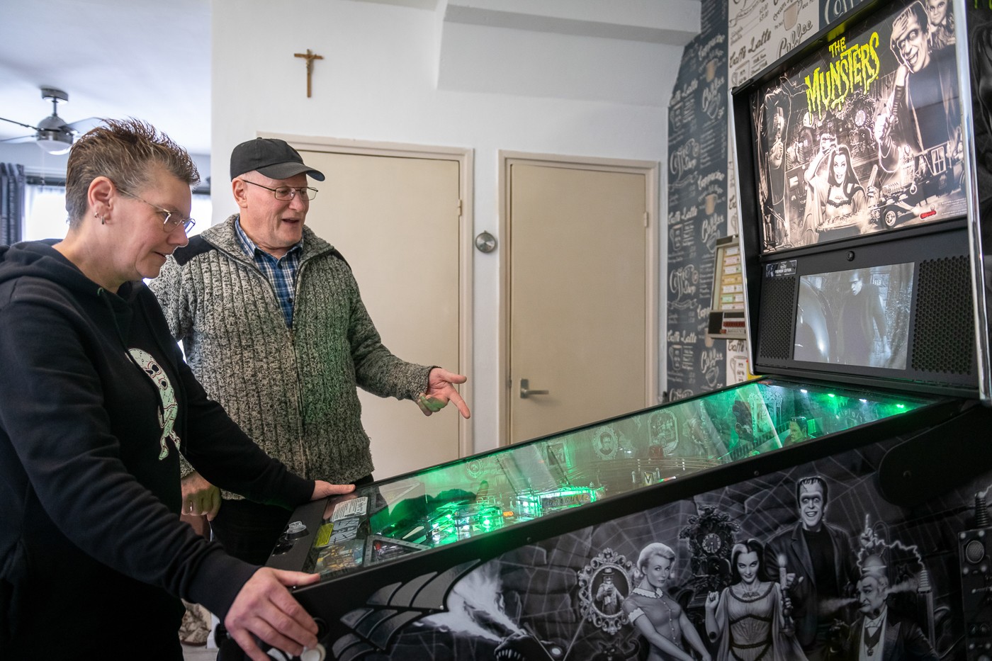 In de woning van Ton en Anke aan de Eindhovense Hobbemastraat stap je zo een American Diner binnen, zoals je die in series als ‘Happy Days’ weleens ziet. Aan de wand van de woonkamer hangt een werkende wallbox, een jukebox voor aan de muur. Maar de absolute blikvanger is een juweel van een flipperkast, waar je niet eens een muntje in hoeft te gooien. En dat is een mooie besparing, zeker in combinatie met de lage energierekening van het sympathieke tweetal.