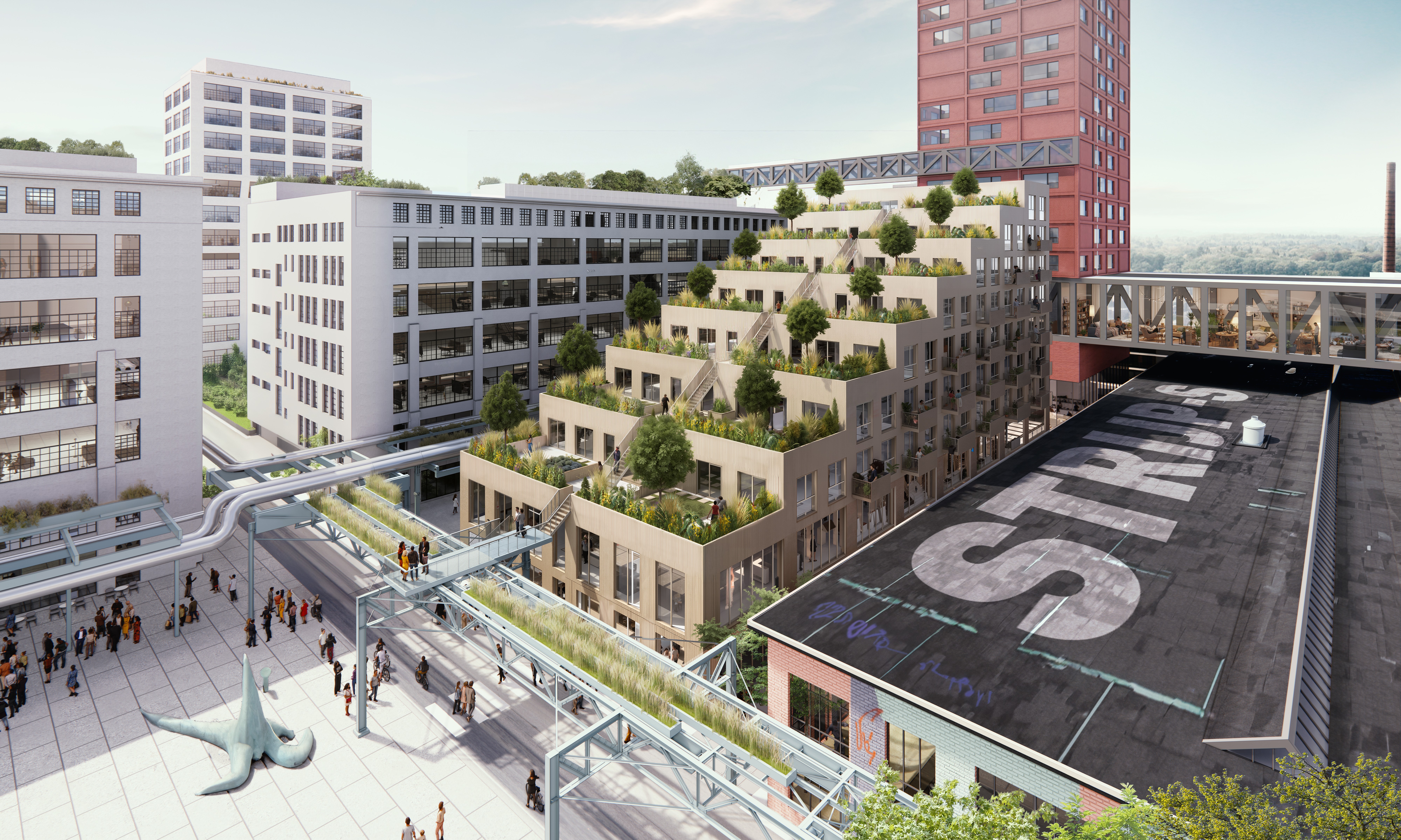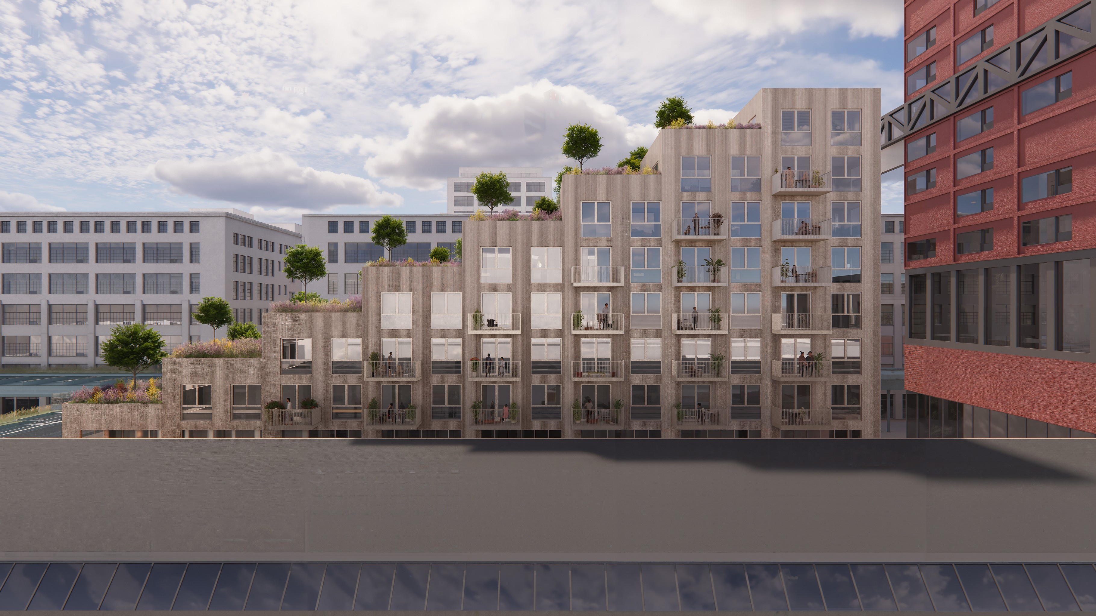 Trapsgewijs oplopend gebouw met 56 appartementen op Strijp-S