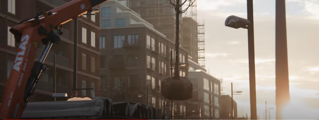Het plaatsen van de eerste bomen in de Trudo Toren Eindhoven (Strijp-S)